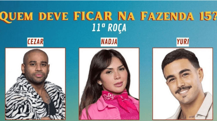 Enquete A Fazenda 15 + Votação R7: quem sai: Cezar, Nadja ou Yuri? E quem fica na 11ª Roça?