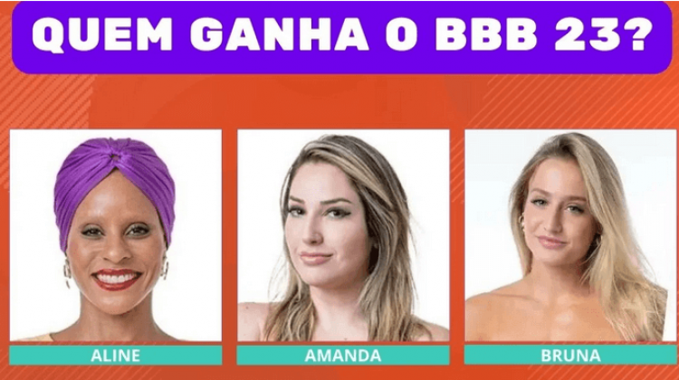 Aline, Amanda ou Bruna, quem ganha o BBB 23? Quem receber mais votos no site do Gshow será a vencedora.