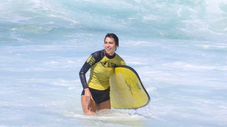 Vanessa Lopes surfa e curte dia de sol em Ipanema, no Rio
