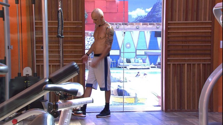 Malhando na academia, Ayrton fala sozinho, enquanto caminha de um lado para o outro, nos intervalos dos exercícios: "Essa semana vai tocar...", diz ele, referindo-se ao Big Fone.