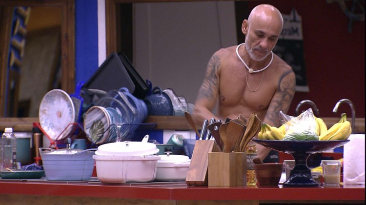 Na cozinha, Ayrton mexe em uma panela do Tá com Tudo. Kaysar repreende o brother: "Chefe, não pode mexer". O carioca responde: "Não fiz por mal".