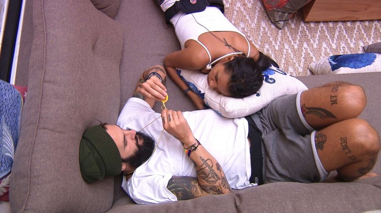 A sister fala: "Tô achando que vou para o Paredão e vou sair". O artista visual brinca com a situação: "Já começou já? Se eu não ganhar a liderança essa semana, eu vou para o Paredão".